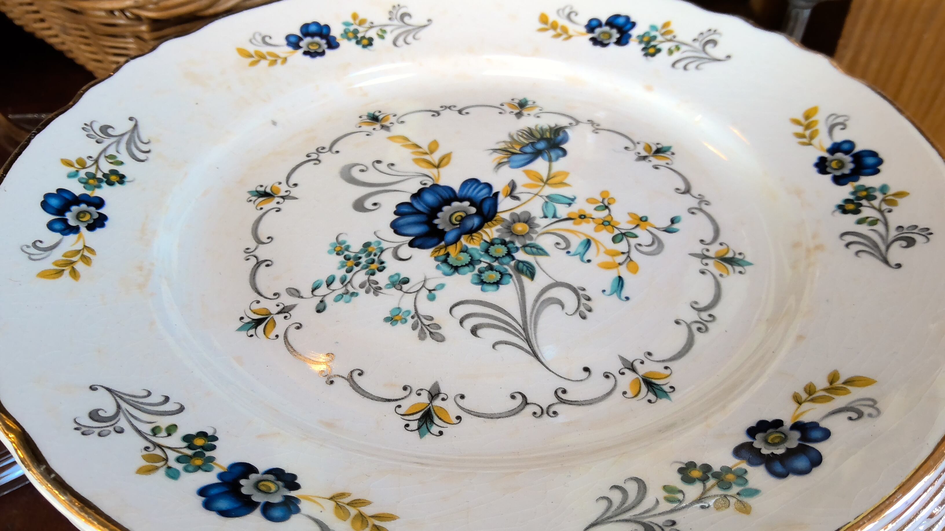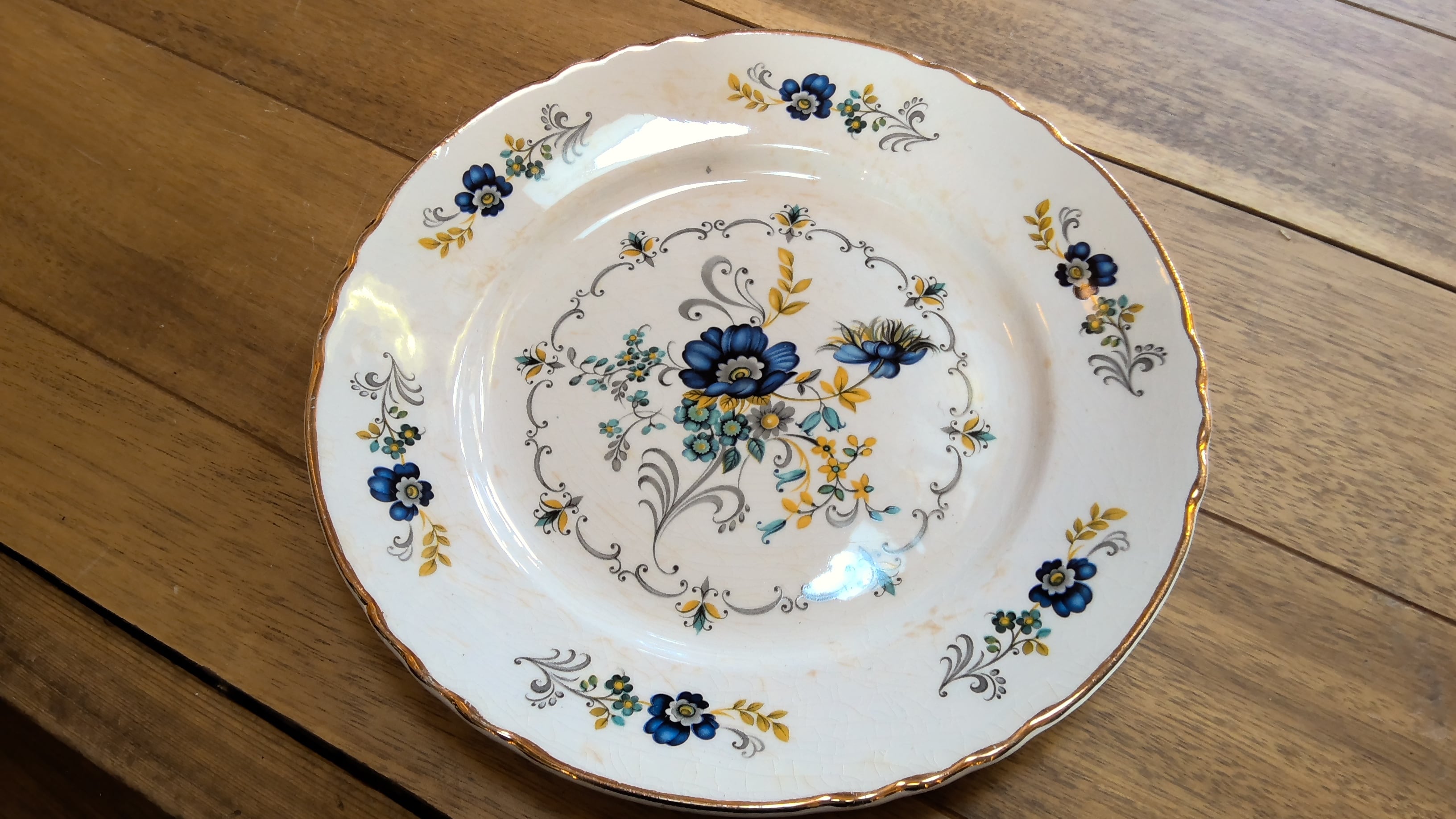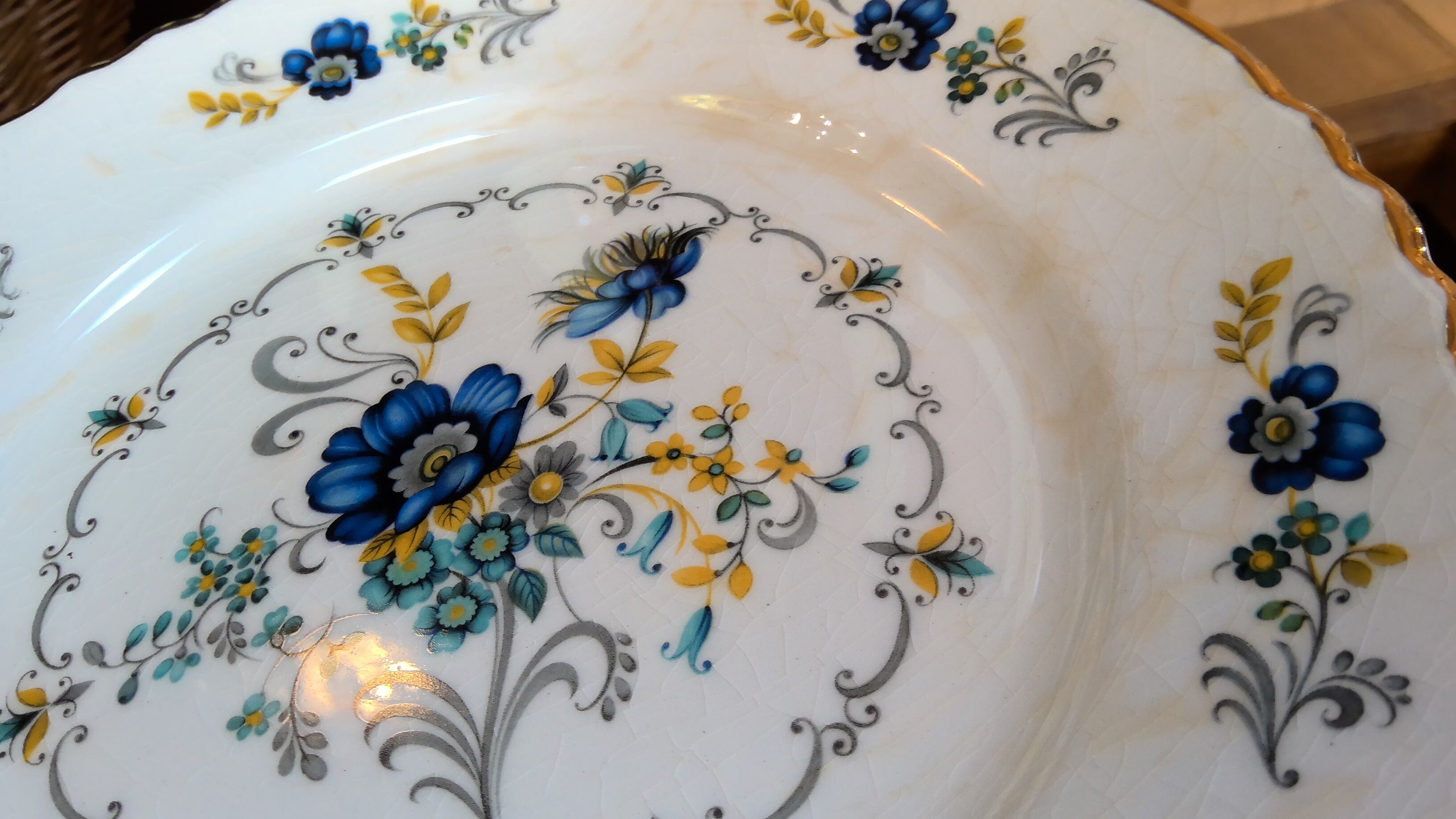 写真に写すのが難しい小さなシミ、プリントの剥がれ、貫入、ふちのゴールドが剥がれている部分もございますが、全ては掲載できません。古いものの味として楽しんでいただける方のご購入をお願いいたします。